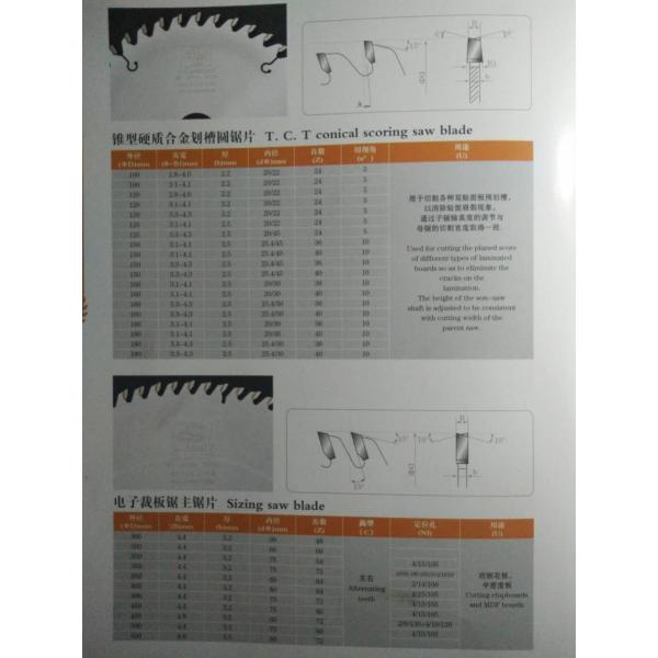 More information about High precision finishing T.C.T Conical Scoring Saw Blade for cutting bilaminated,chipboard and MDF as bellow: